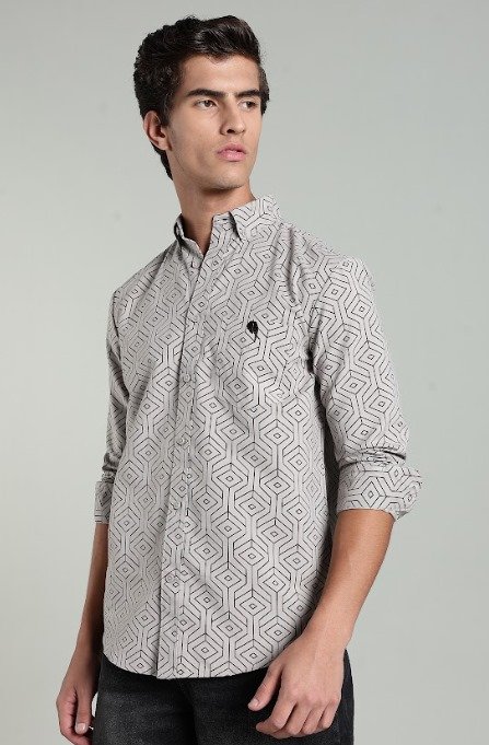 SKU: LS-002 ||Grey Print|| Full Sleeve Shirts || 100% Cotton Category: